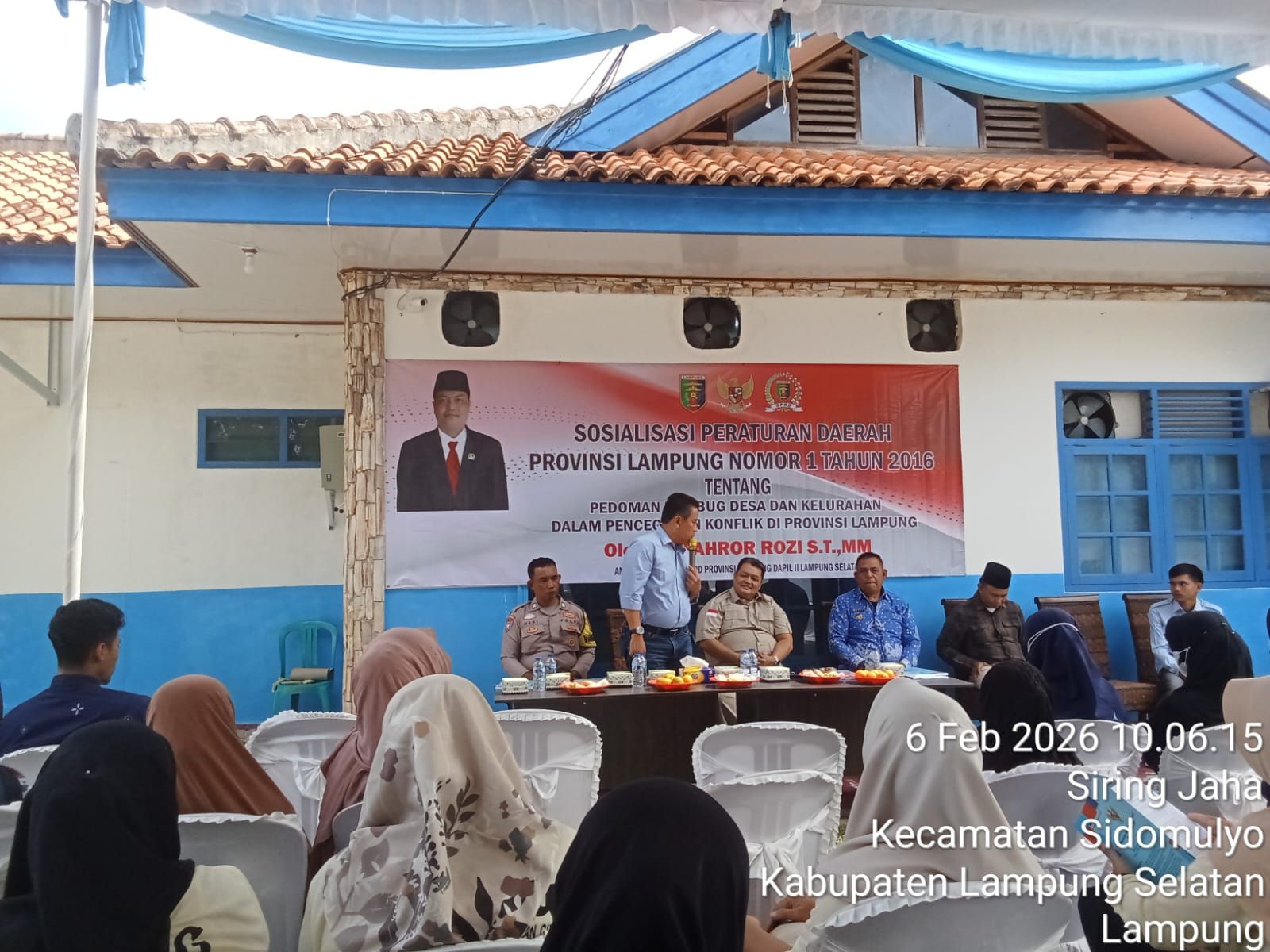 LAMPUNG SELATAN, (FL) – Anggota DPRD Provinsi Lampung, Fahror Rozi, S.T., M.M., memimpin kegiatan reses di Desa Siring Jaha, Kecamatan Sidomulyo, Kabupaten Lampung Selatan, Jumat (6/2/2026). Dalam kegiatan tersebut, ia menyosialisasikan Peraturan Daerah Provinsi Lampung Nomor 1 Tahun 2026 tentang pedoman rembug desa dan kelurahan sebagai upaya pencegahan konflik di masyarakat.